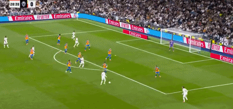 第44分钟,巴尔韦德助攻,贝林厄姆兜射入死角,皇马3-0